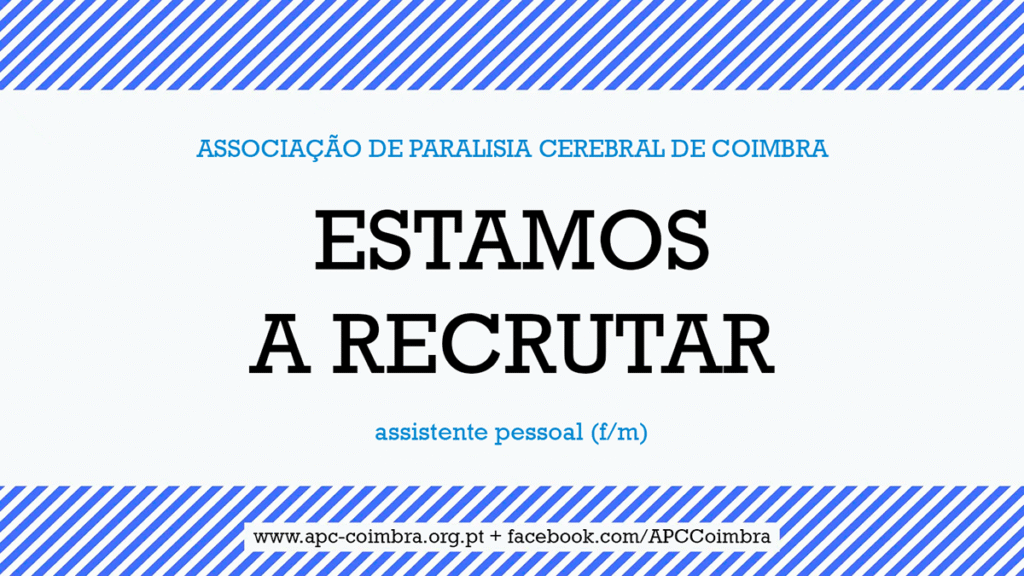 A APCC – Associação de Paralisia Cerebral de Coimbra pretende recrutar Assistentes Pessoais (F/M) para trabalhar junto de pessoas com deficiência. Requisitos obrigatórios: – Idade igual ou superior a 18 anos; – Escolaridade obrigatória. Critérios de seleção adicionais: – Carta de condução; – Robustez física; – Flexibilidade de horários. Funções: – Apoio […]