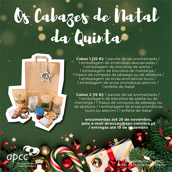 Este ano, a APCC vai dar-lhe uma ajuda a tornar o seu Natal – ou o dos seus familiares e amigos – absolutamente inesquecível, com Os Cabazes de Natal da Quinta, cheios de produtos feitos na Quinta da Conraria! Pode encomendá-los até ao dia 29 de novembro, sendo a entrega assegurada até 19 de dezembro, bem a tempo de fazer da quadra natalícia um momento ainda mais especial!