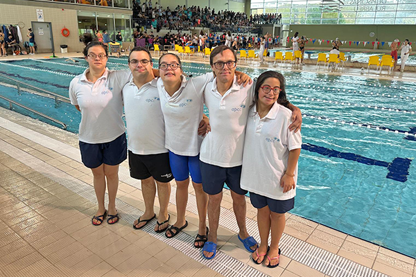A natação é um dos desportos desenvolvidos no âmbito da atividade do Departamento de Educação Física e Desporto da APCC, tanto na vertente competitiva (com vários atletas a representarem regularmente a instituição em provas de âmbito nacional e regional), como de adaptação ao meio aquático, aprendizagem, manutenção e treino. Pode saber mais em www.apc-coimbra.org.pt/?page_id=276.
