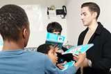 É que o Pedro também escreveu um livro, “Pedro e Paty – O Mistério das Profissões”, que leva os leitores a conhecer dois amigos que, nas férias escolares, passeiam pelas ruas da sua cidade para descobrir o que fazem todo o dia as pessoas adultas e o que significa ter uma profissão. E foi nessa descoberta que o nosso voluntário levou os utentes da Associação, oferecendo-lhes um exemplar do livro e lendo com eles a história daquela incrível aventura!